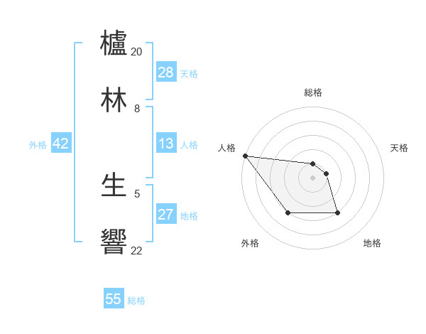 櫨林 生響さんを姓名の画数から五運を鑑定