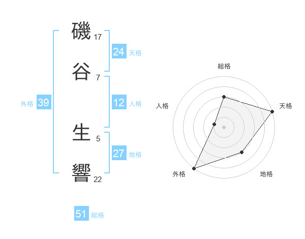 磯谷 生響さんの総格は51画の3点!