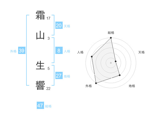霜山 生響さんの外格は39画の5点!