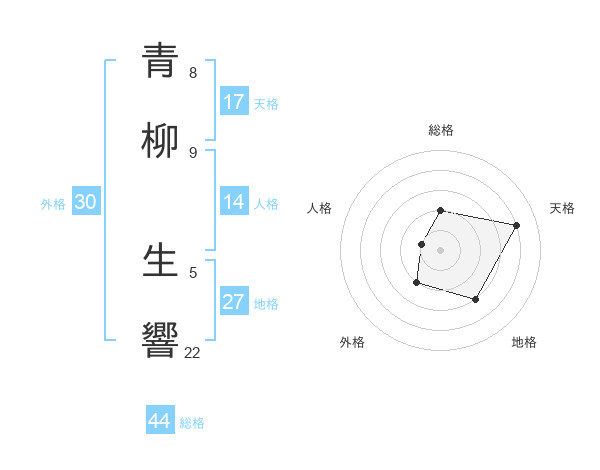 青柳 生響さんの総格は44画の2点!