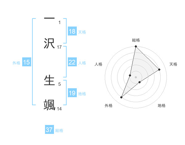 一沢 生颯さんの総格は37画の5点!