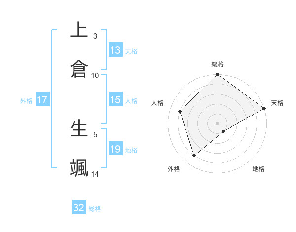 上倉 生颯さんを姓名の画数から五運を鑑定