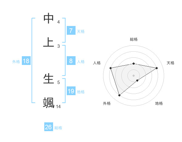中上 生颯さんの総格は26画の2点!