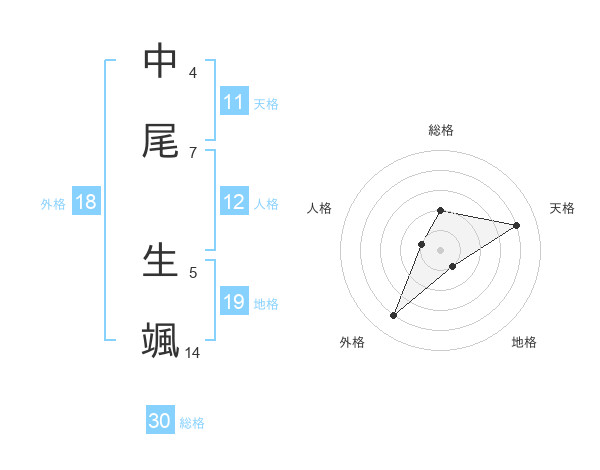 中尾 生颯さんの天格は11画の4点!