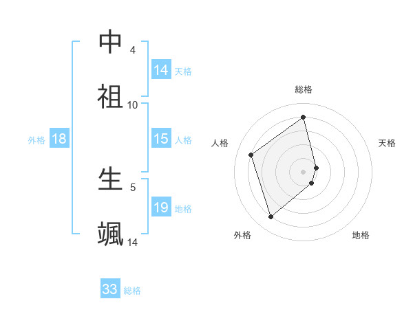 中祖 生颯さんの総格は33画の4点!