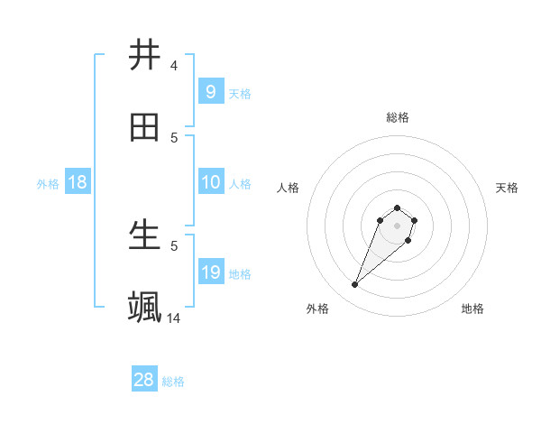 井田 生颯さんの総格は28画の1点!