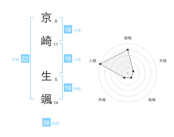 京崎 生颯さんの総格は38画の4点!