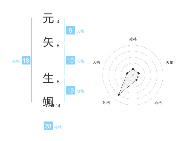 元矢 生颯さんの総格は28画の1点!