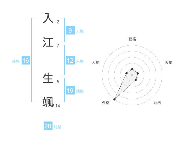 入江 生颯さんの総格は28画の1点!