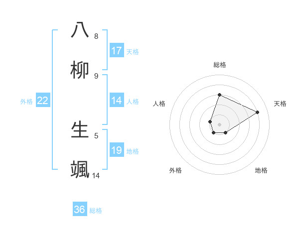 八柳 生颯さんを姓名の画数から五運を鑑定