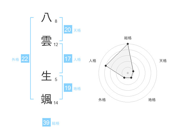 八雲 生颯さんの外格は22画の1点!