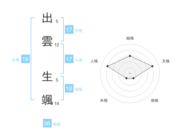出雲 生颯さんの天格は17画の4点!