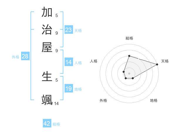 加治屋 生颯さんの天格は23画の5点!