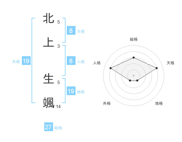北上 生颯さんの天格は8画の4点!