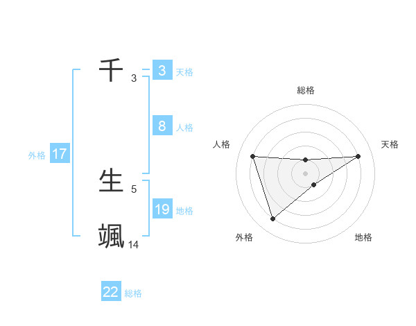 千 生颯さんを姓名の画数から五運を鑑定