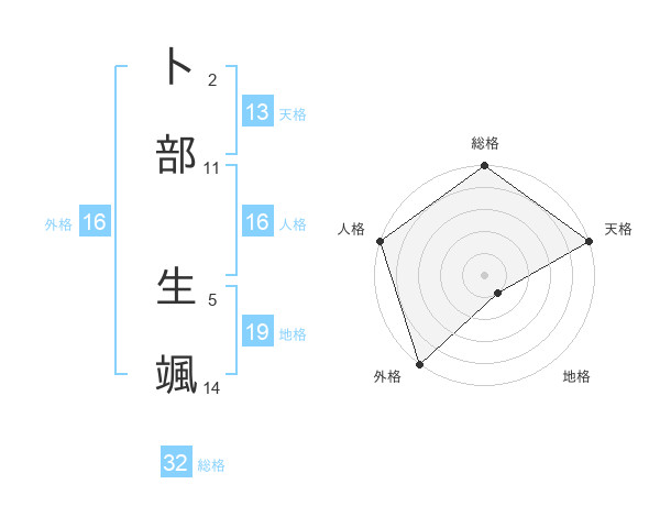 卜部 生颯さんを姓名の画数から五運を鑑定