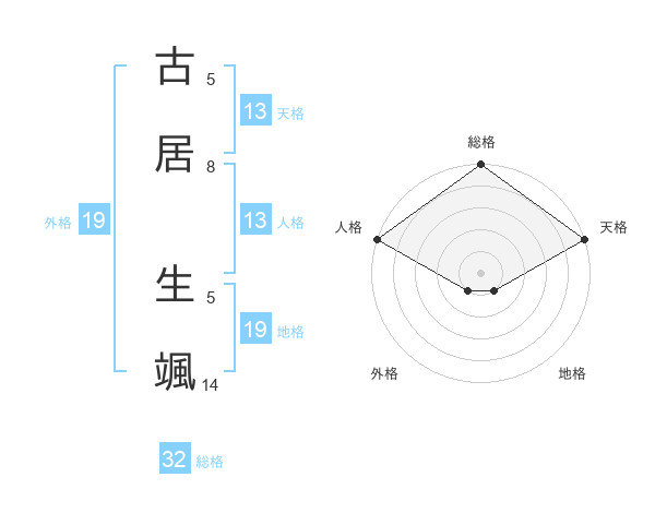 古居 生颯さんの総格は32画の5点!