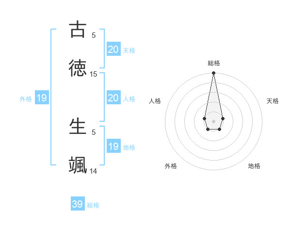 古徳 生颯さんの総格は39画の5点!