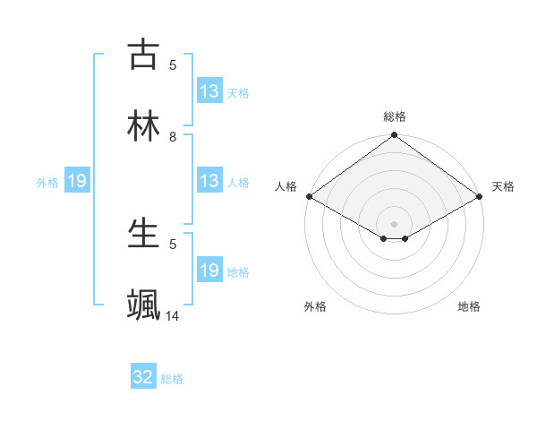 古林 生颯さんの総格は32画の5点!