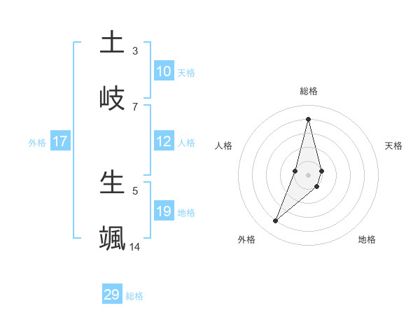 土岐 生颯さんの総格は29画の4点!