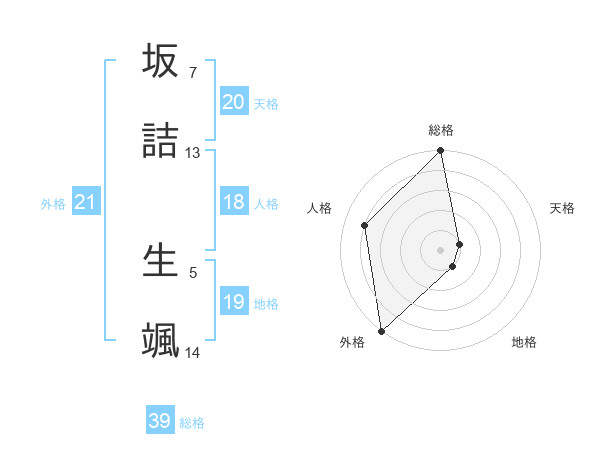 坂詰 生颯さんの外格は21画の5点!
