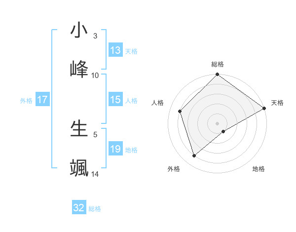 小峰 生颯さんの総格は32画の5点!