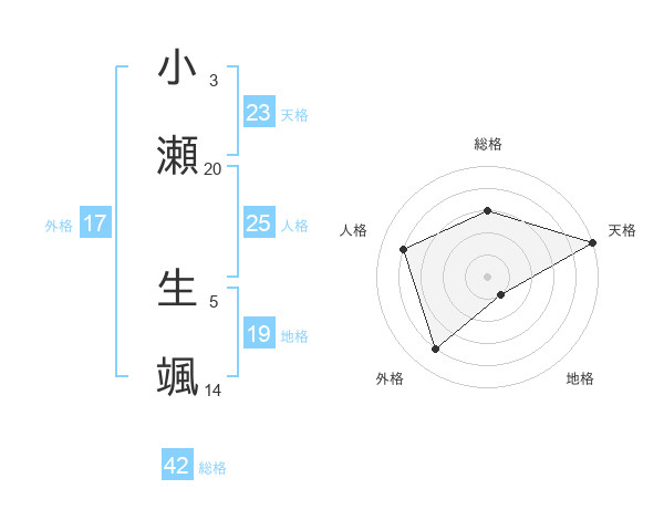 小瀬 生颯さんを姓名の画数から五運を鑑定