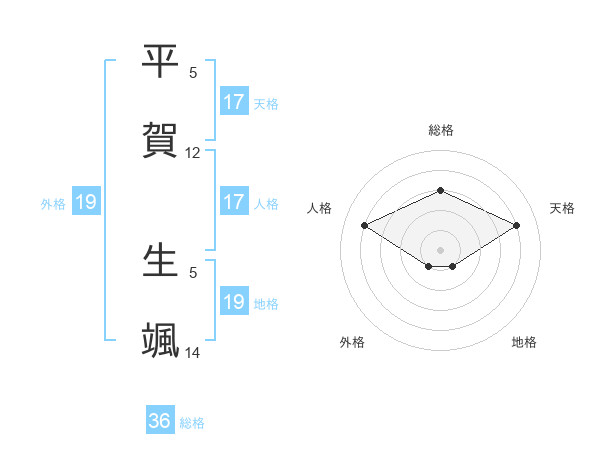 平賀 生颯さんの天格は17画の4点!