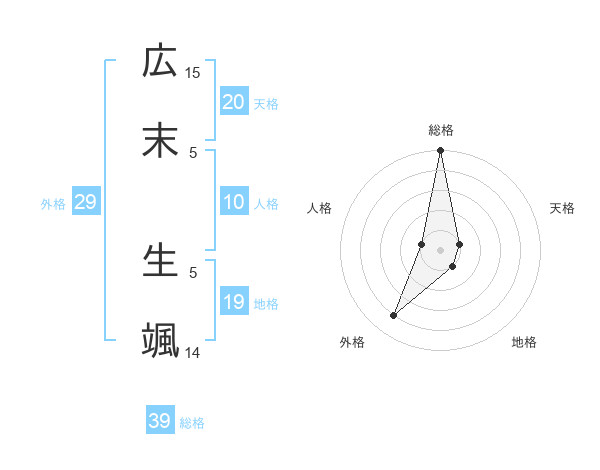 広末 生颯さんの総格は39画の5点!