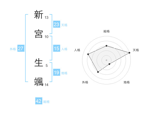 新宮 生颯さんの総格は42画の3点!