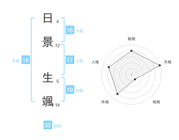 日景 生颯さんを姓名の画数から五運を鑑定