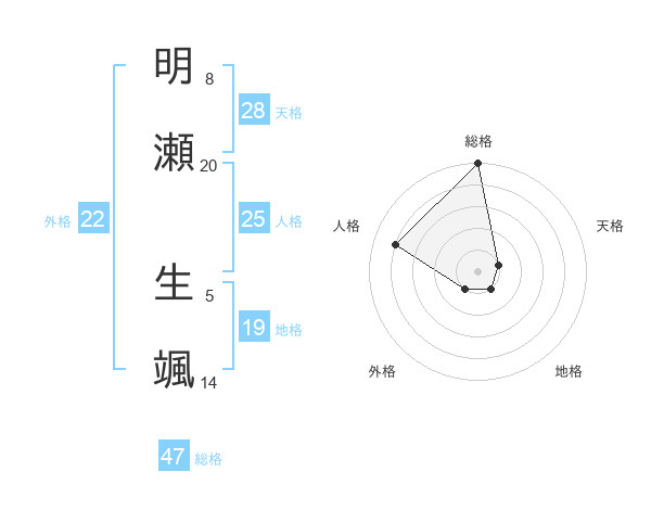 明瀬 生颯さんを姓名の画数から五運を鑑定
