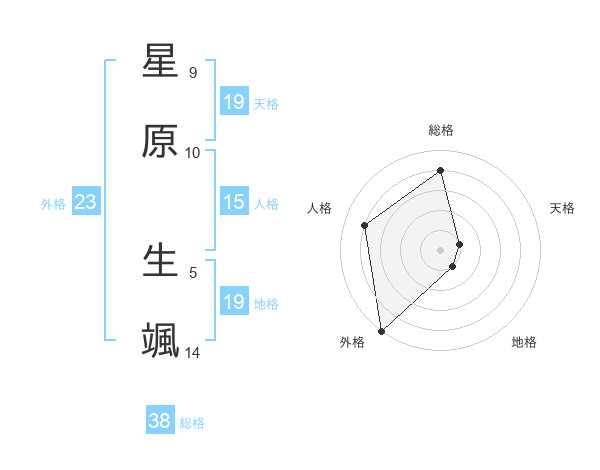 星原 生颯さんの外格は23画の5点!