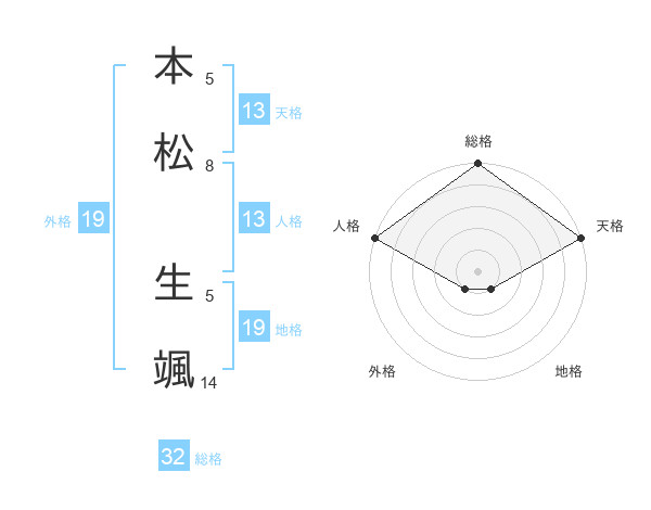 本松 生颯さんの総格は32画の5点!