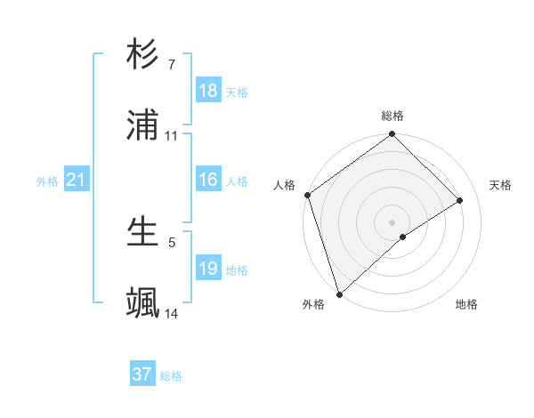 杉浦 生颯さんの外格は21画の5点!