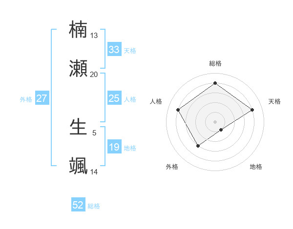 楠瀬 生颯さんの総格は52画の4点!