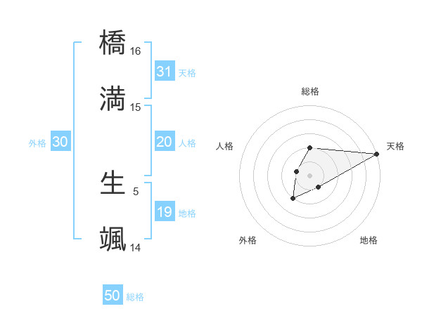 橋満 生颯さんの総格は50画の2点!