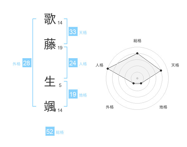 歌藤 生颯さんの総格は52画の4点!