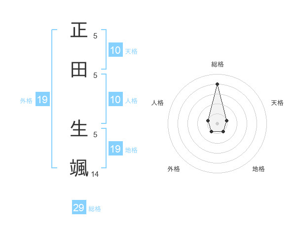 正田 生颯さんの総格は29画の4点!