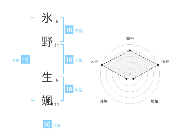 氷野 生颯さんの天格は16画の5点!
