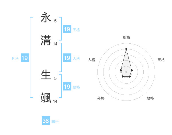 永溝 生颯さんの総格は38画の4点!