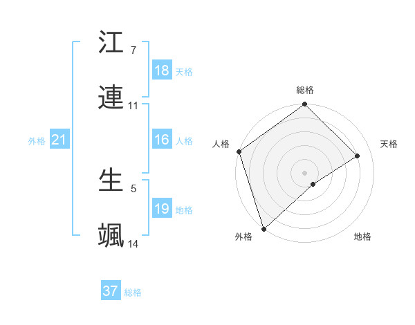 江連 生颯さんの総格は37画の5点!