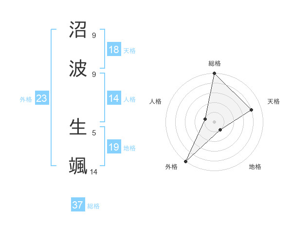 沼波 生颯さんを姓名の画数から五運を鑑定