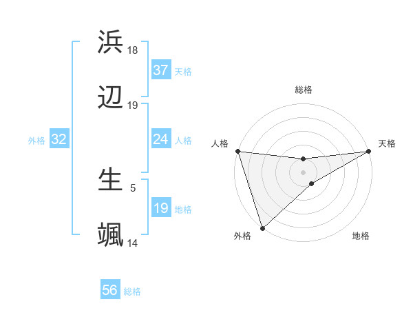 浜辺 生颯さんの総格は56画の1点!
