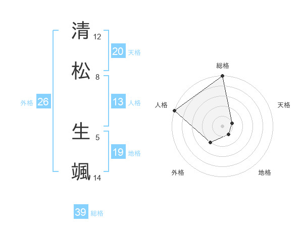 清松 生颯さんの総格は39画の5点!