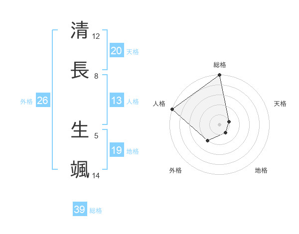 清長 生颯さんの天格は20画の1点!