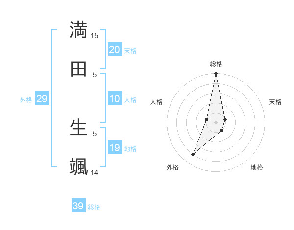 満田 生颯さんの総格は39画の5点!