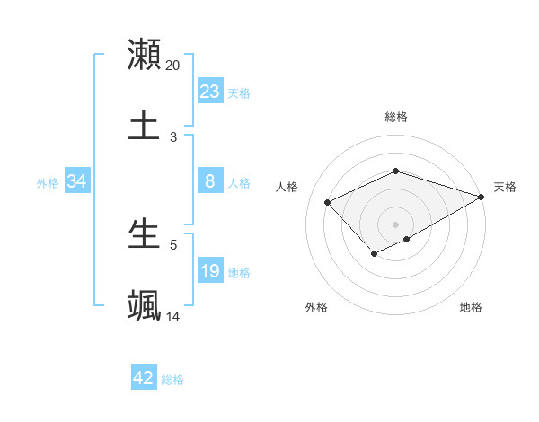 瀬土 生颯さんを姓名の画数から五運を鑑定