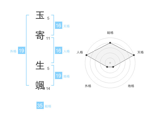 玉寄 生颯さんを姓名の画数から五運を鑑定