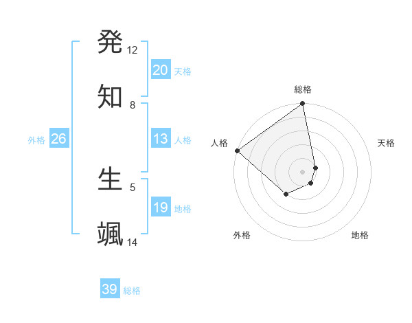 発知 生颯さんの総格は39画の5点!